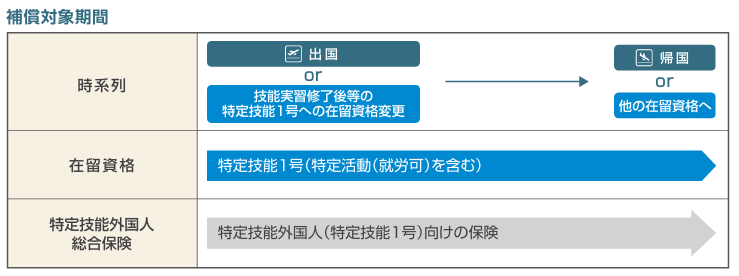 特定技能外国人総合保険にご加入いただくことで、特定技能外国人(特定技能1号)がケガや病気となった場合、安心して治療を受けていただくための一助としていただき、充実した特定技能活動にお役立てください。